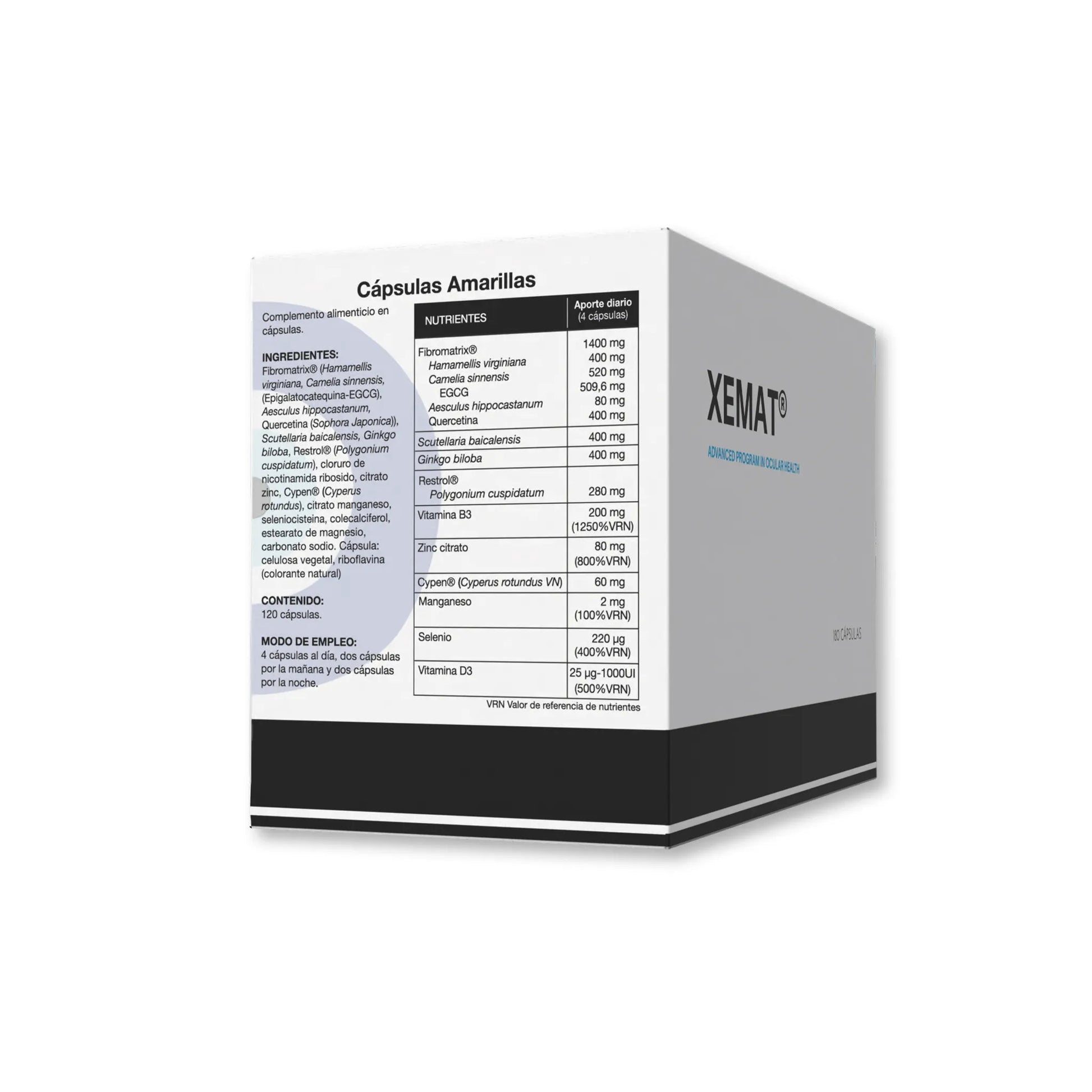 Fibromatrix: Este compuesto protege el colágeno, la elastina y el acido hialurónico mediante regulación de varios tipos de enzimas que son esenciales para mantener la elasticidad de los vasos sanguíneos, la piel, mucosas y el ojo. Incluye, moleculas de alta actividad y pureza de Hamamelis virginiana, Camellia sinensis y Aesculus hippocastanum. No afecta a la hemostasia o coagulación.